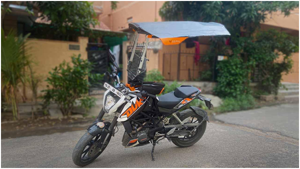 SEPAL was started in 2018 by IIT-B alumni, with a goal to provide all 2-wheeler riders with the important comforts of a car, which includes complete weather protection and all the Infotainment comforts. The first of their innovations is SEPAL, which is a smart collapsible canopy that provides the rider and the pillion with compete protection from sun, rain, dust and even cold. That too entirely on-demand, i.e. users can open/ close SEPAL within seconds whenever required. And when closed, SEPAL transforms into a compact bag that snugly sits on the petrol tank not interfering with one’s riding experience.